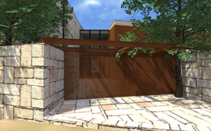 O intimismo e a neutralidade desejada é realçada no objecto arquitectónico pelo desenho da sua silhueta e pelos materiais preconizados. Assim sendo a edificação é proposta com base na pré-existência, decapando os seus paramentos por forma a ficar com a pedra à vista, o volume correspondente à ampliação realizado em betão aparente de cor cinza. As áreas de alçado transparente serão efectuadas em vidro SGG aplicado nas esquadrias de alumínio com ruptura térmica da NAVARRA, lacado cor RAL 7016.